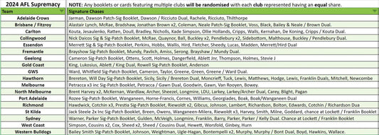 Break 3709- 2024 AFL Supremacy 2 Box Pick Your Team!
