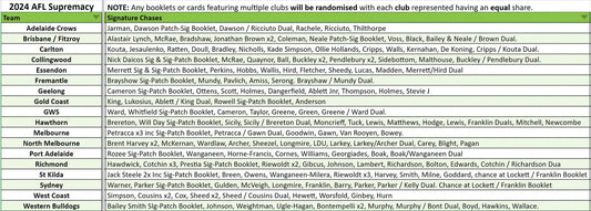 Break 3654 - 2024 AFL Supremacy 1 Box Pick Your Team!