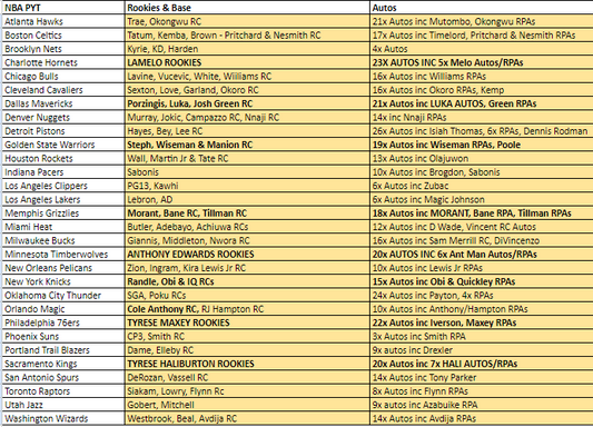 Break 1454 - NBA 20/21 Chronicles x Select 6 Box - Pick Your Team!