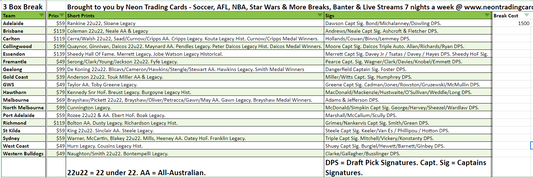 Break 1449 - 2023 AFL Select Legacy 3 Box - Pick Your Team ROUND 2!