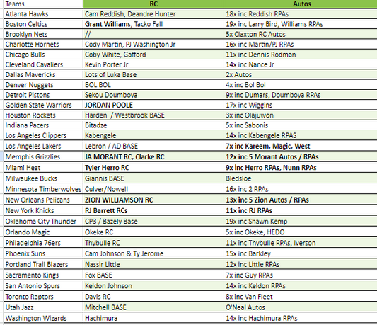 Break 1345 - NBA 19/20 Chronicles Hobby - Pick Your Team!