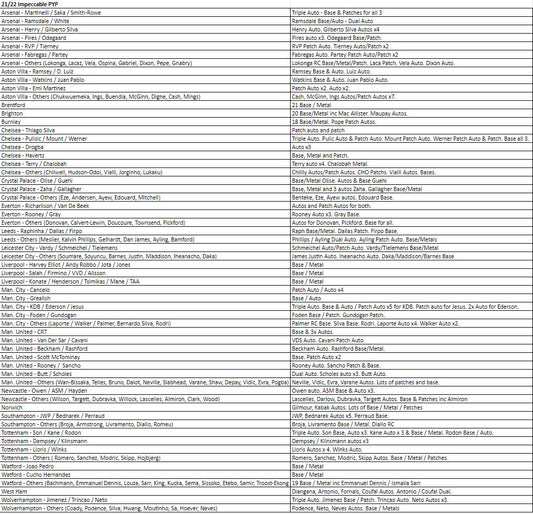 Break 294 - 21/22 EPL Impeccable - Asia Edition - Full Case - Pick Your Player / Team