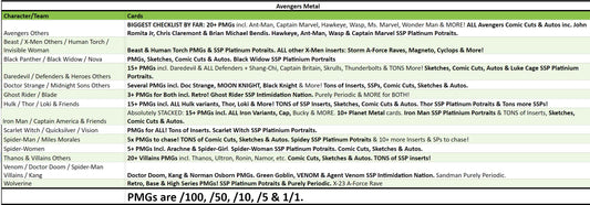 Break 3631 - 2024 Marvel Avengers Metal Universe - Pick Your Character/Team!