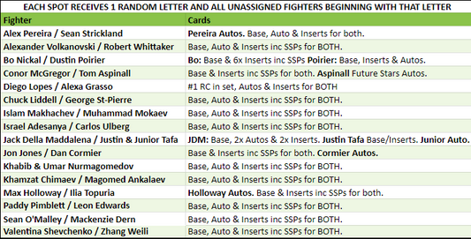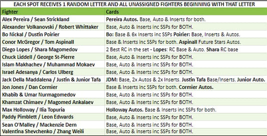 Break 3273 - 2024 UFC Chrome Hobby x Mega - Pick Your Fighter + Random Letter!