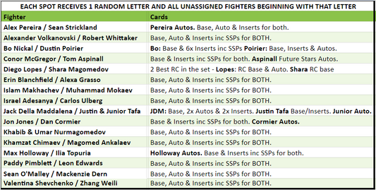 Break 3259 - 2021 UFC Immaculate Hobby - Random Fighter Combo & Letter!
