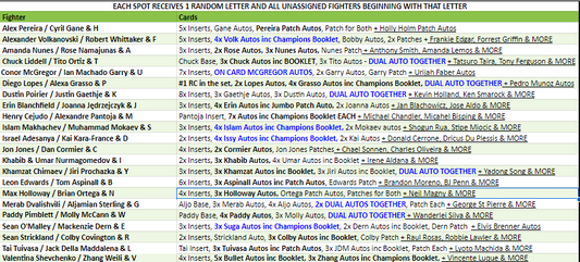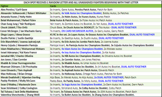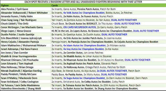 Break 3712 - 2024 UFC Knockout Hobby HALF CASE - Pick Your Figther & Letter Combo!