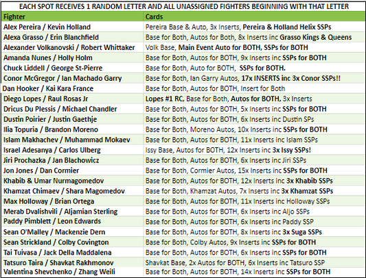 Break 3661 - 2024 Topps UFC Chrome Hobby x Breakers x Mega - Pick Your Fighter & Random Letter!