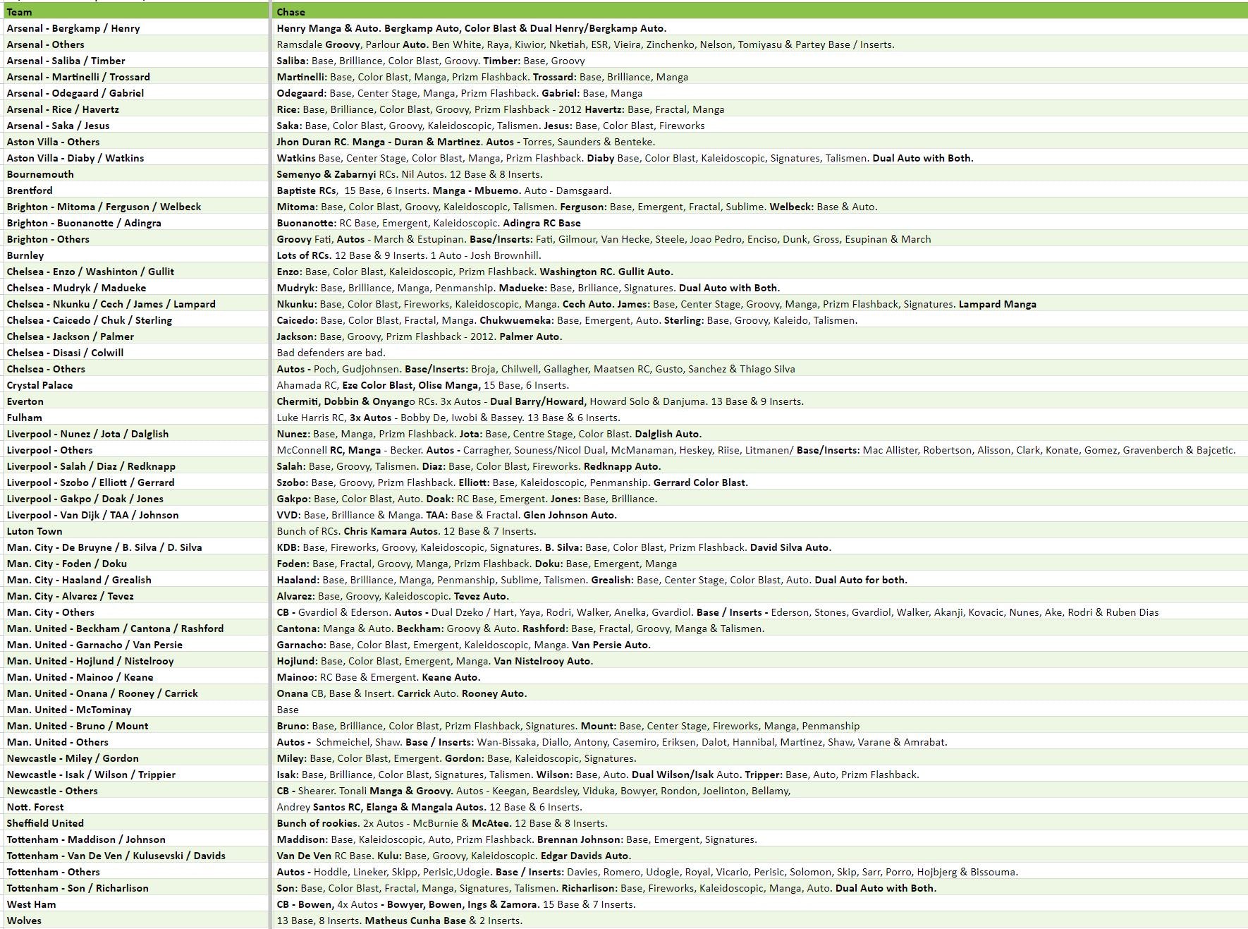The international juggernaut that is Prizm Premier League returns for the 2023-24 season with a vibrant array of Prizm parallels and calling-card inclusions such as Color Blast, Groovy, Manga and more!