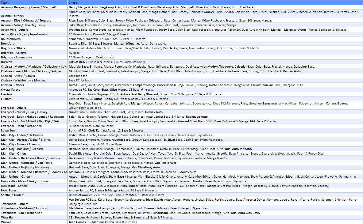 The international juggernaut that is Prizm Premier League returns for the 2023-24 season with a vibrant array of Prizm parallels and calling-card inclusions such as Color Blast, Groovy, Manga and more!
