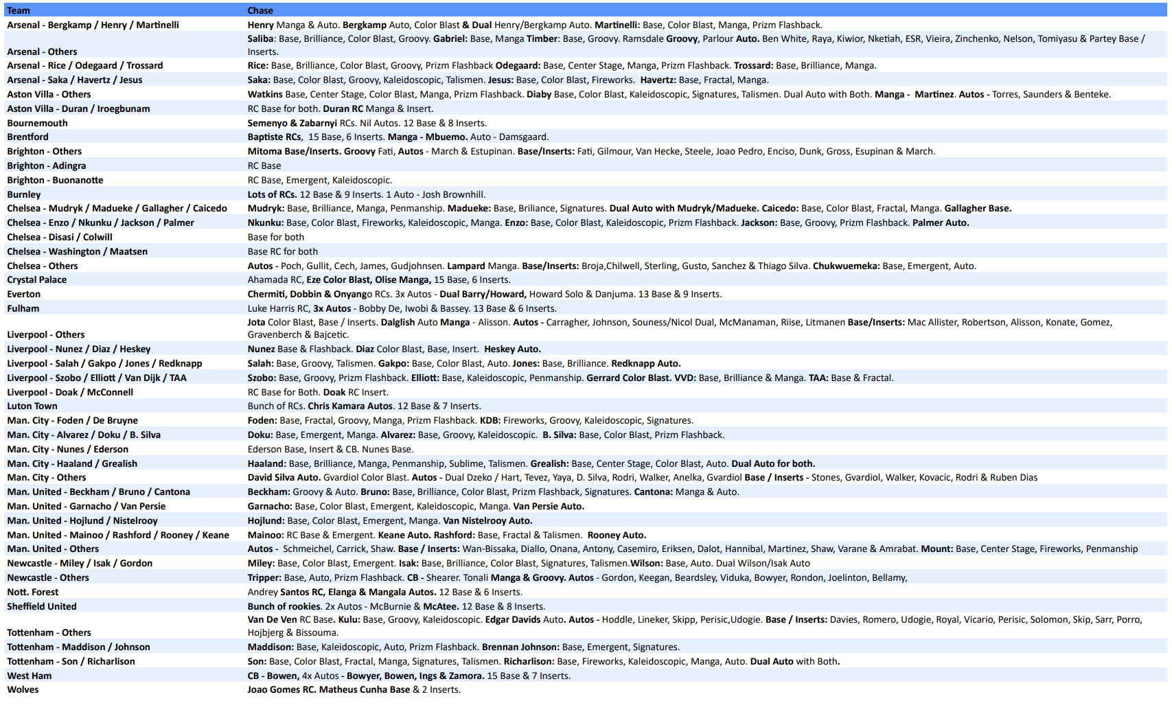 3x 23/24 EPL Prizm Hobby ft 1 Auto & 12 Parallels/Variations per box chasing Color Blasts, Manga's & More