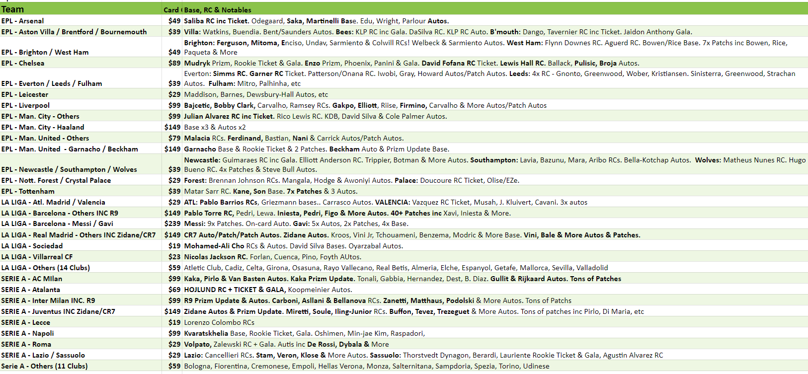 4x 22/23 Chronicles Soccer Hobby - Each hobby box contains 3 mini boxes, one for each of La Liga, Serie A & the EPL. Each Mini box contains 1 Auto or Mem & 2 Parallels!