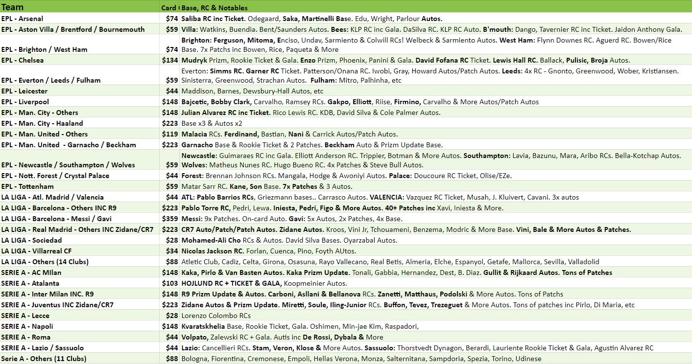 6x 22/23 Chronicles Soccer Hobby - Each hobby box contains 3 mini boxes, one for each of La Liga, Serie A & the EPL. Each Mini box contains 1 Auto or Mem & 2 Parallels!