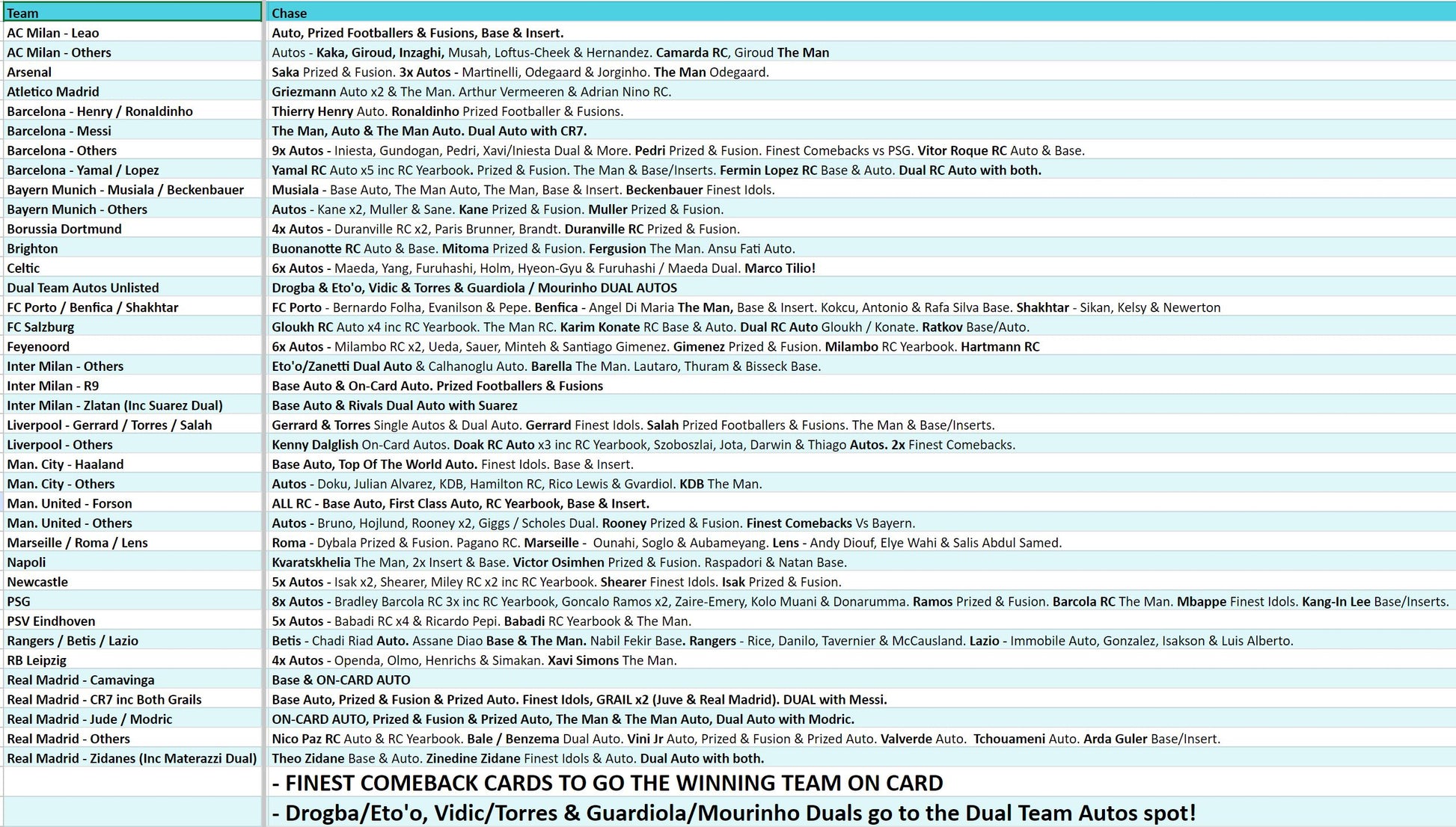 NOTE: Finest comeback cards will go to the winning team on the card. I.e. Liverpool 4-0 Barcelona will go to Liverpool. Drogba/Eto'o, Vidic/Torres & Guardiola/Mourinho Duals go to the Dual Team Autos spot!