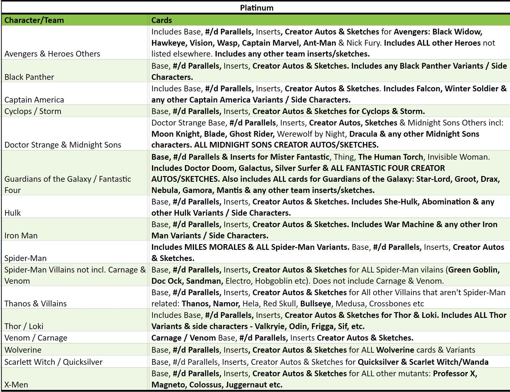Break 3097 - 2023 Marvel Platinum - Pick Your Character/Team!