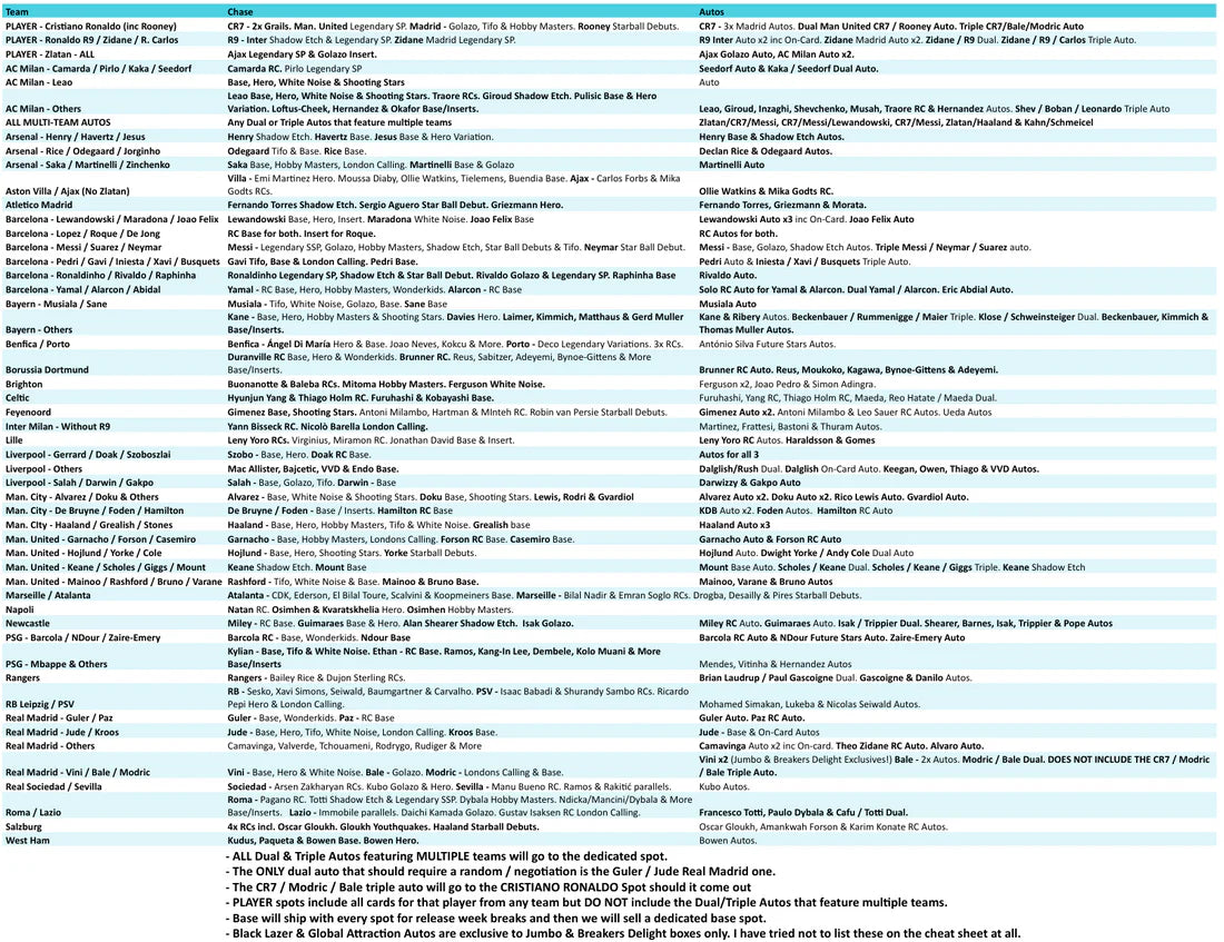 - ALL Dual & Triple Autos featuring MULTIPLE teams will go to the dedicated spot. - The ONLY dual/triple autos that should require a random / negotiation is the Guler / Jude Real Madrid one.