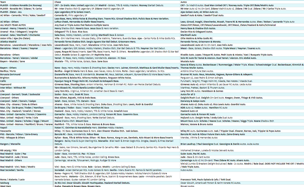 - PLAYER spots include all cards for that player from any team but DO NOT include the Dual/Triple Autos that feature multiple teams.