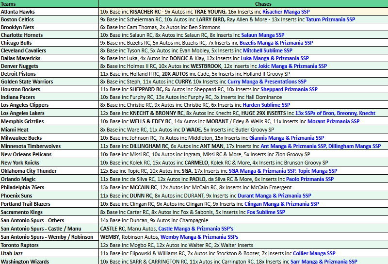 The Cornerstone of NBA Products is BACK - checkout our full checklist generator HERE to easily see your team & player Chases!