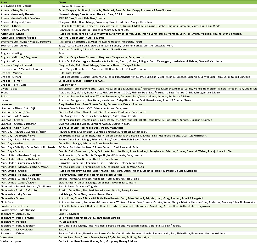 3 Boxes - 24/25 EPL Prizm Hobby ft 1 Autograph, 4 Silver Prizms, 5 Numbered Parallels, 8 other Prizms, and 6 Inserts/Insert Parallels, on average!