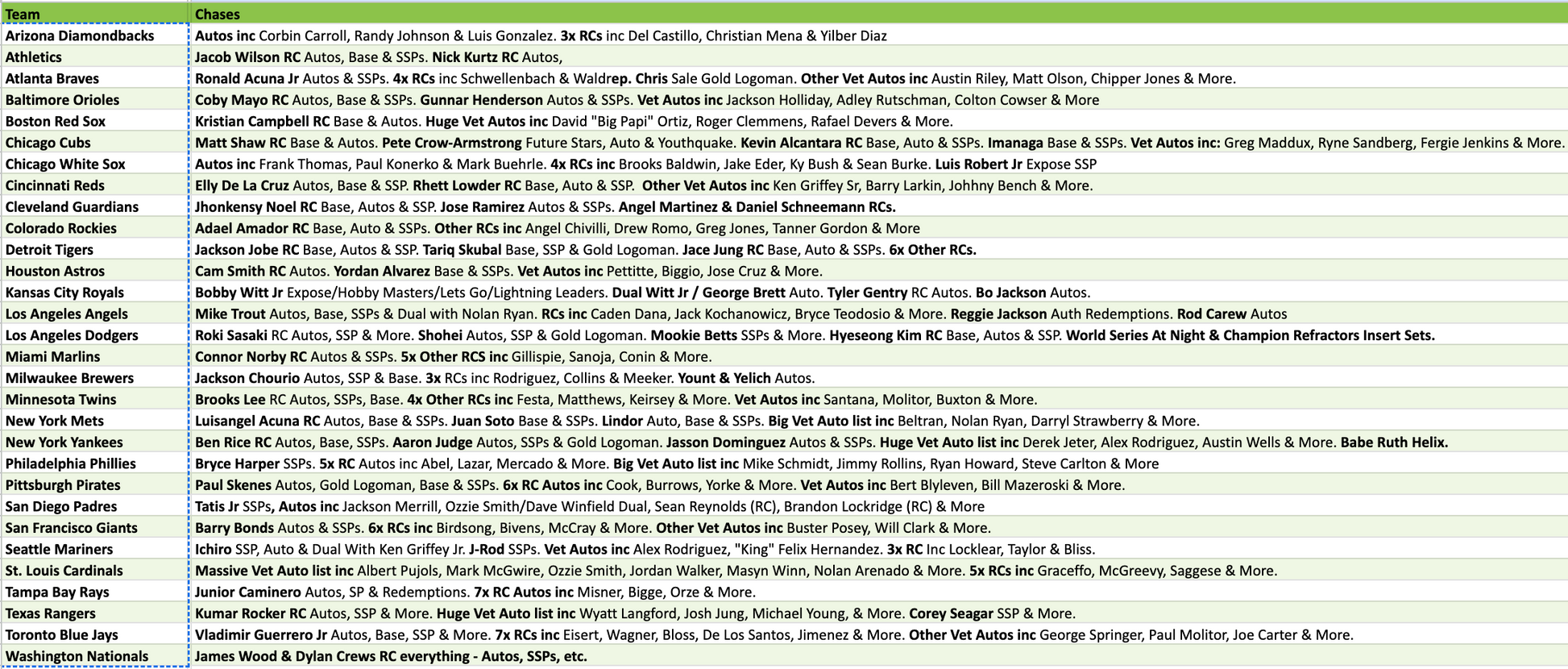 New breaks are listed daily. The type of breaks listed depends on release schedules & product availability.