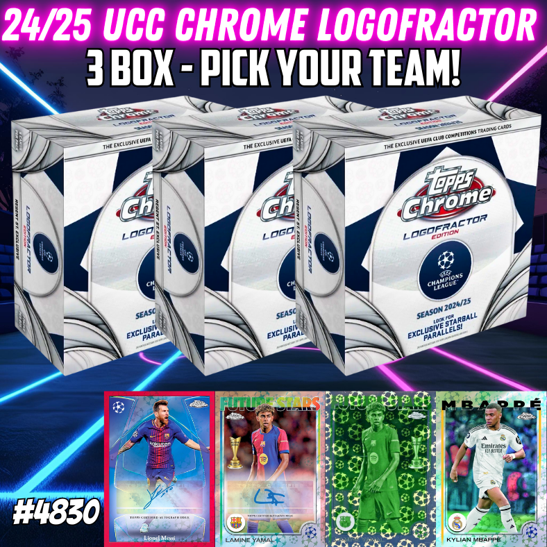 Break 4830 - 24/25 UEFA Club Comp Chrome LOGOFRACTOR - 3 Box - Pick Your Team!