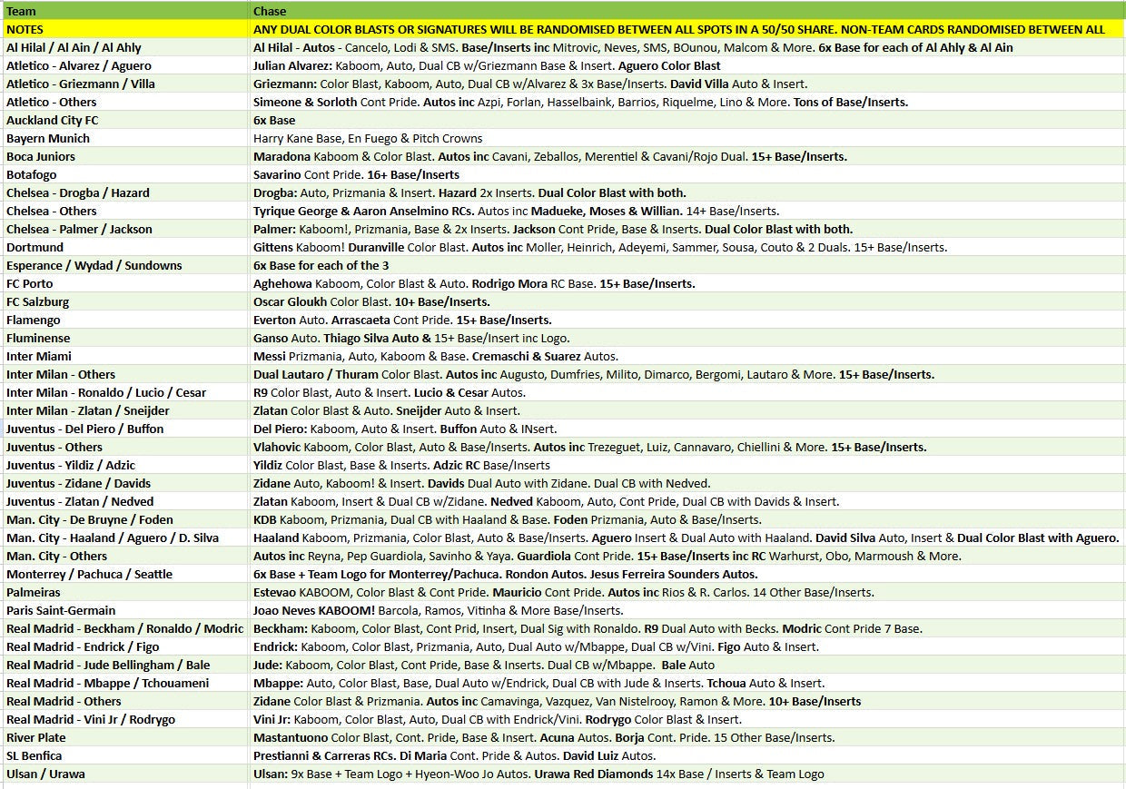 4x 2025 Club World Cup Prizm ft 1 Autograph, 5 Numbered Prizms,8 other Prizms, 2 Silver Inserts, and 10 additional Inserts, on average!
