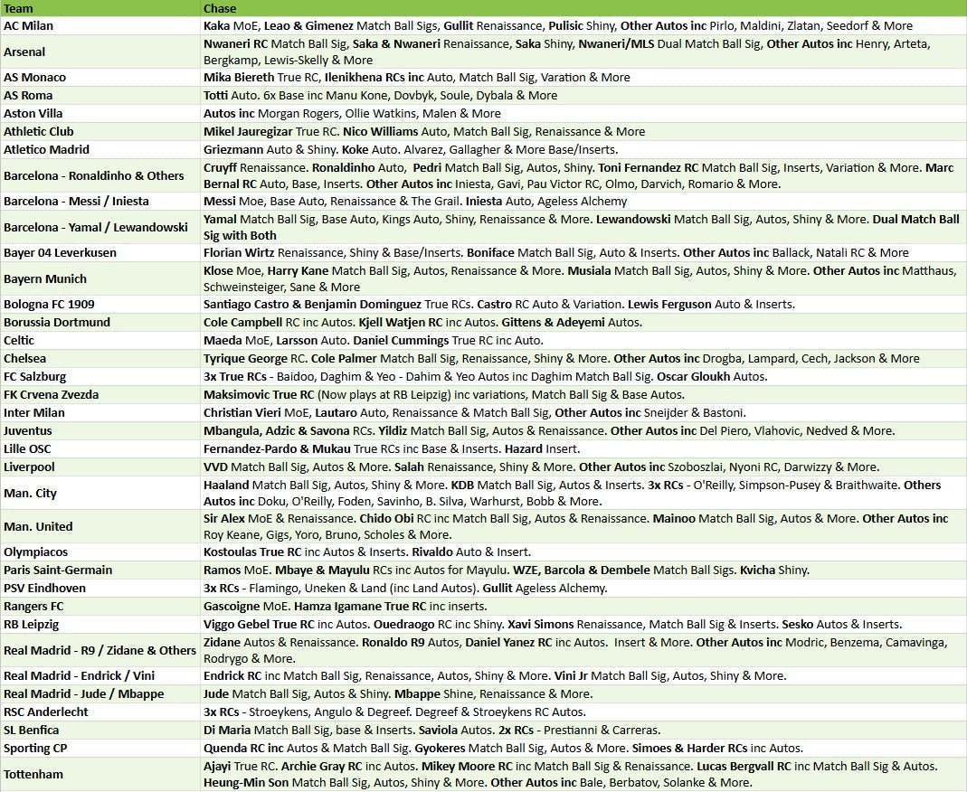 12x 24/25 Topps Chrome Merlin UEFA Club Competitions Soccer Hobby ft 1 Autograph Card, 3 Numbered Parallels, 2 Base Card Refractor Parallels, and 4 Exclusive Atomic Refractor Parallels, on average!