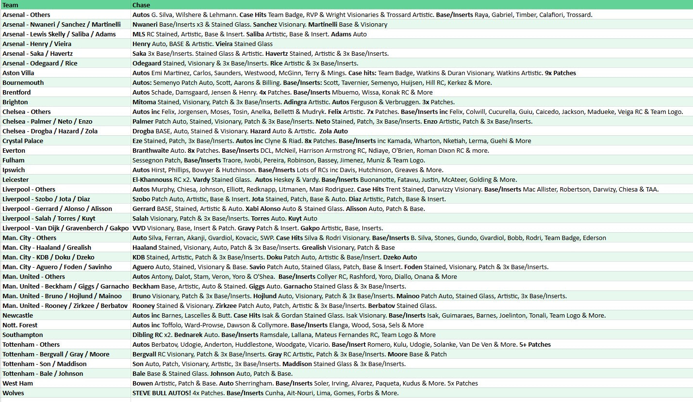 5x 24/25 Panini Select Premier League EPL Soccer Hobby ft 3 Autographs or Memorabilia Cards, 7 Inserts or Insert Parallels, 9 Unnumbered Base Parallels, and 5 Numbered Base Parallels, on average!