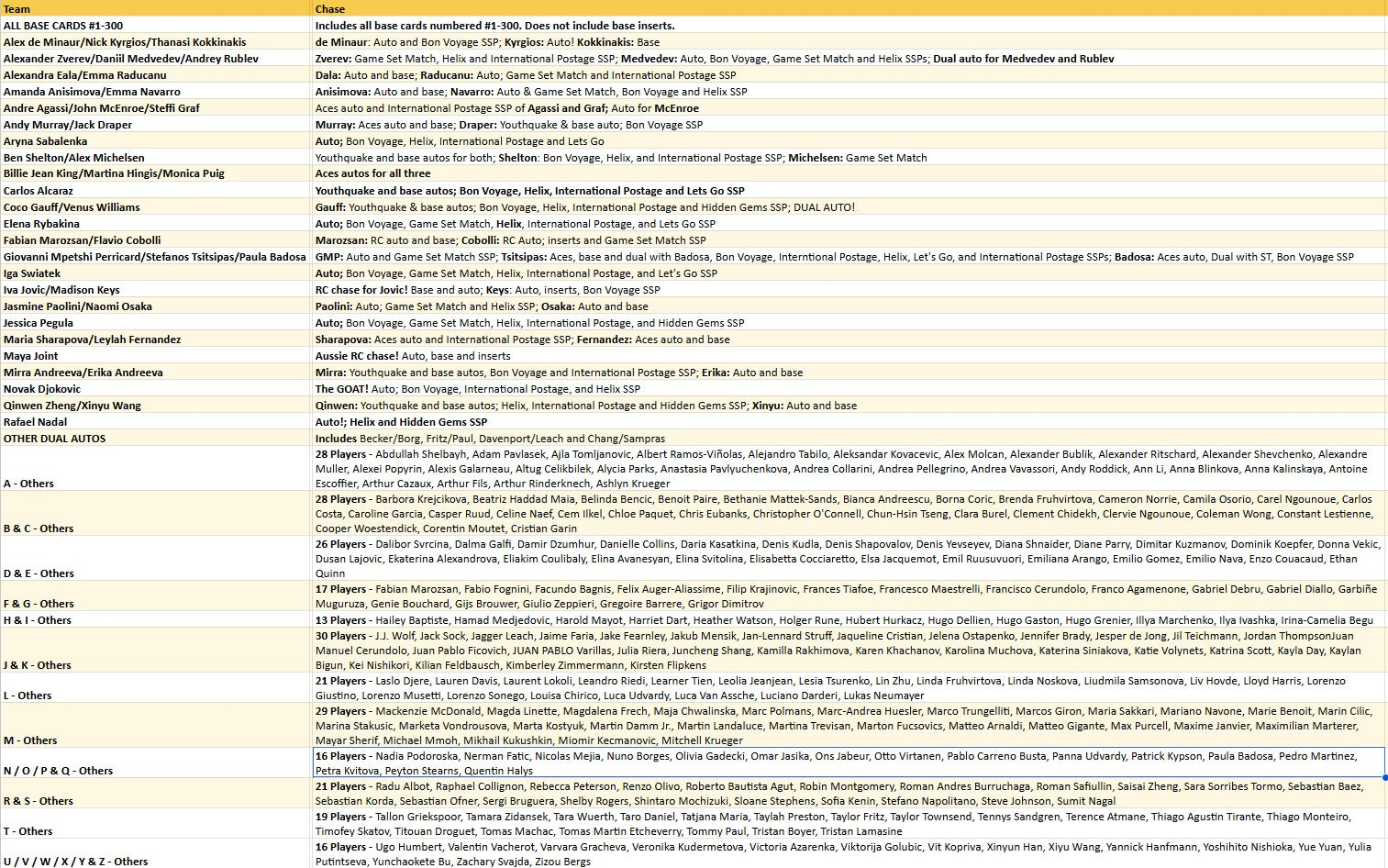 4x 2025 Topps Chrome Tennis Hobby ft 20 Un-Numbered Base Card Parallels, 4 Numbered Refractors, 12 Inserts, and 2 Autographs, on average!