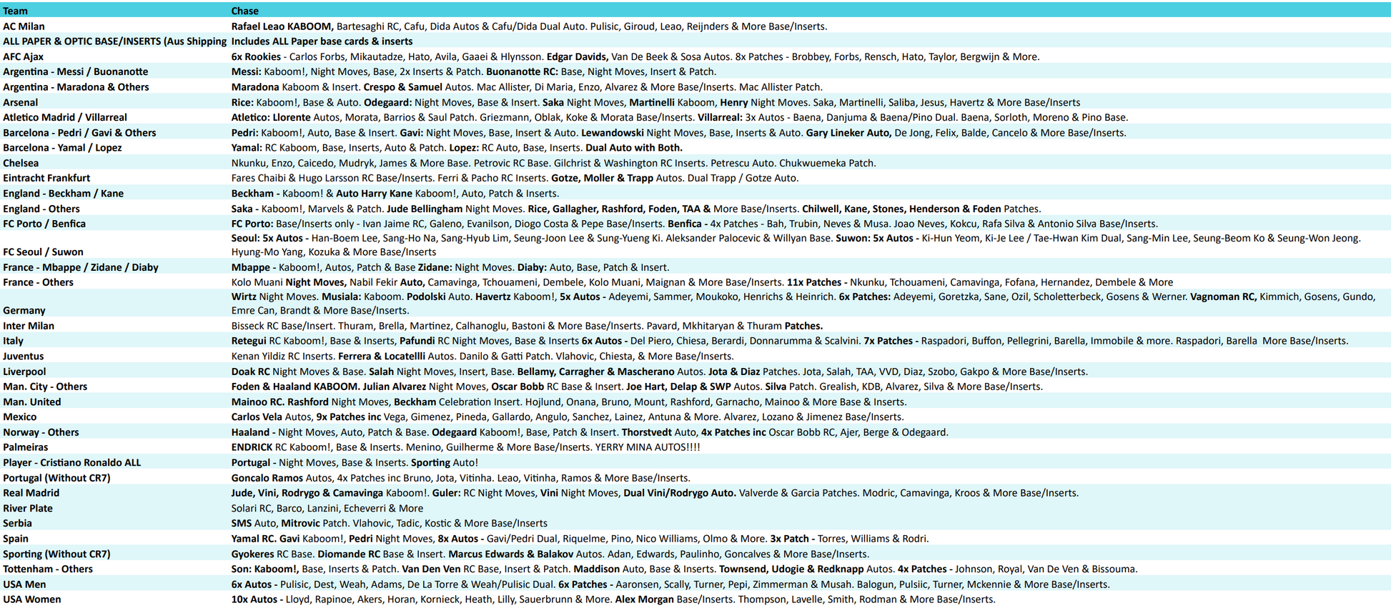 | ALL PAPER & OPTIC BASE/INSERTS (Aus Shipping Only) |