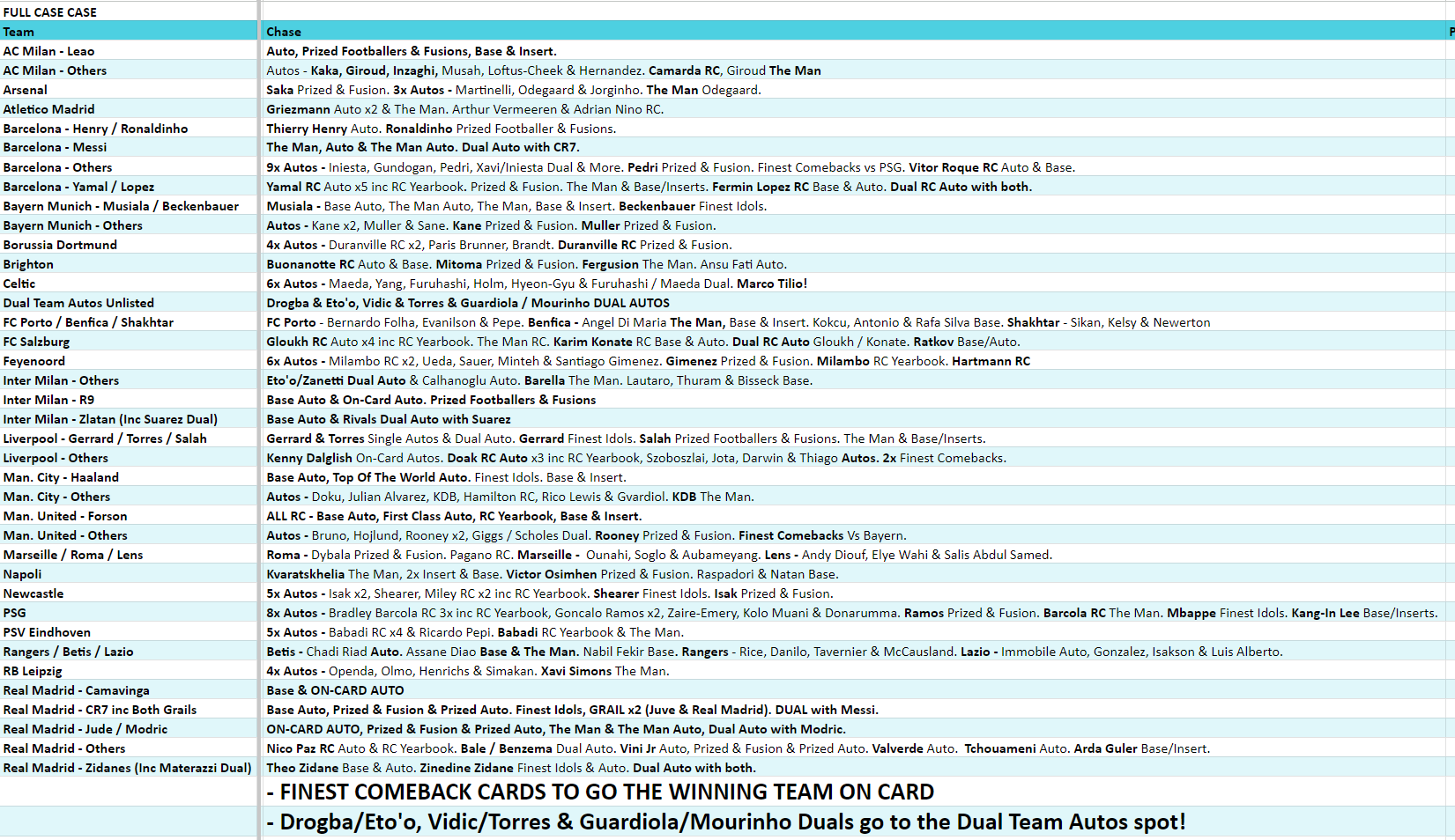 NOTE: Finest comeback cards will go to the winning team on the card. I.e. Liverpool 4-0 Barcelona will go to Liverpool. Drogba/Eto'o, Vidic/Torres & Guardiola/Mourinho Duals go to the Dual Team Autos spot!