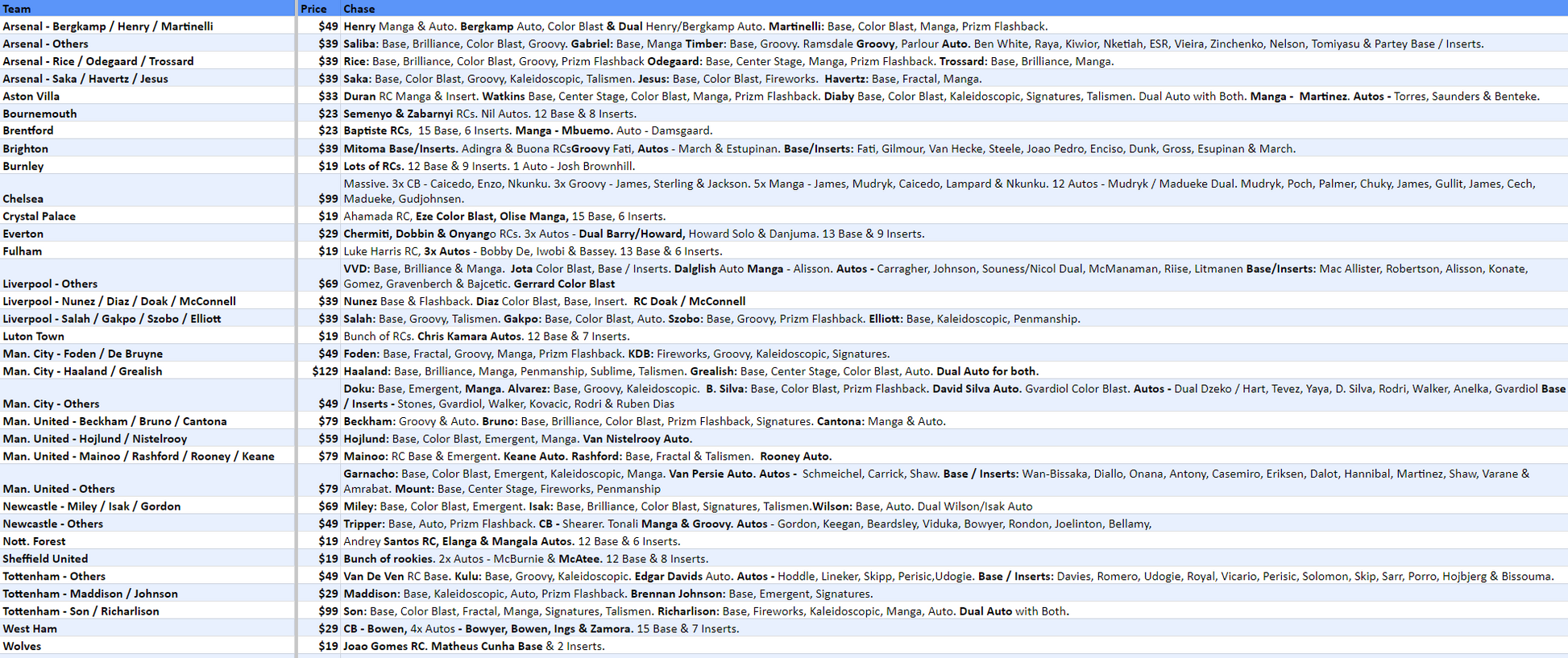 The international juggernaut that is Prizm Premier League returns for the 2023-24 season with a vibrant array of Prizm parallels and calling-card inclusions such as Color Blast, Groovy, Manga and more!