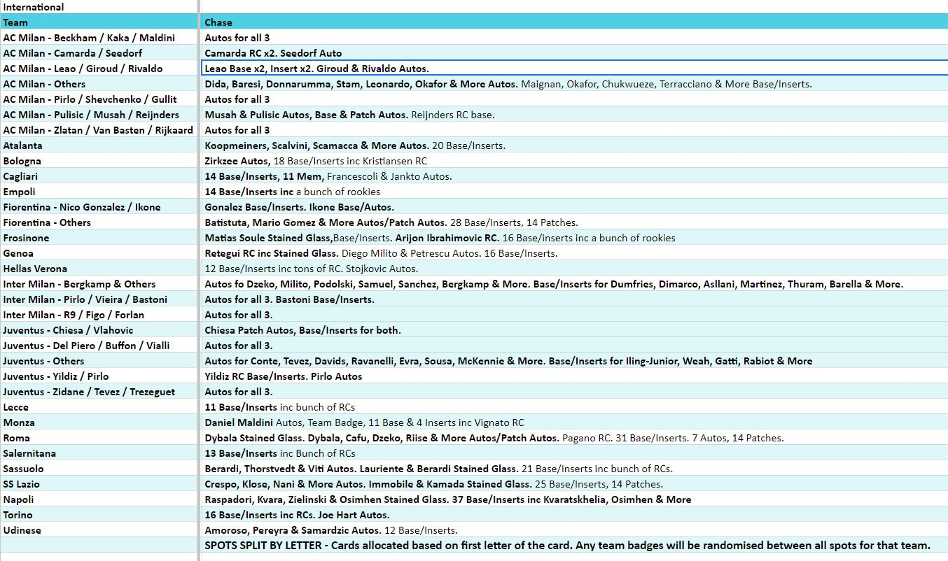 SPOTS SPLIT BY LETTER - Cards allocated based on first letter of the card. Any team badges will be randomised between all spots for that team.