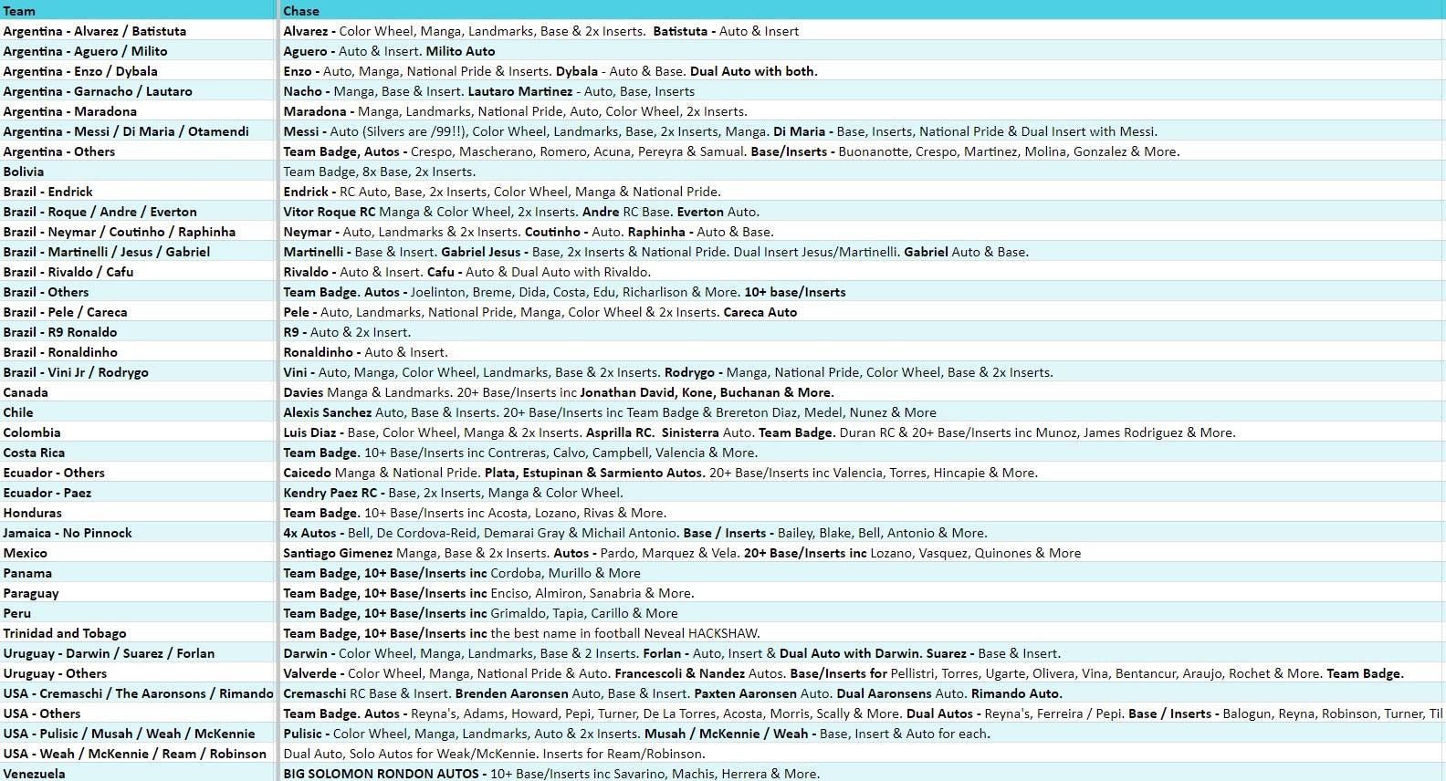 ALL DUAL AUTOS that fall across multiple spots will be given a chance to negotiate with all spots represented on the card having an equal share. If no deal can be made within 24 hours we will randomise the card.