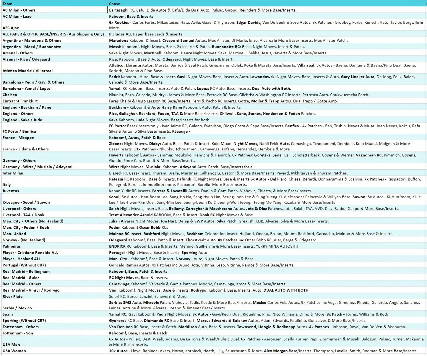 5x 23/24 Donruss Soccer International Hobby - Chasing the dragon parallels /8, black pandora /1 and Dragon Autos /25 or less!