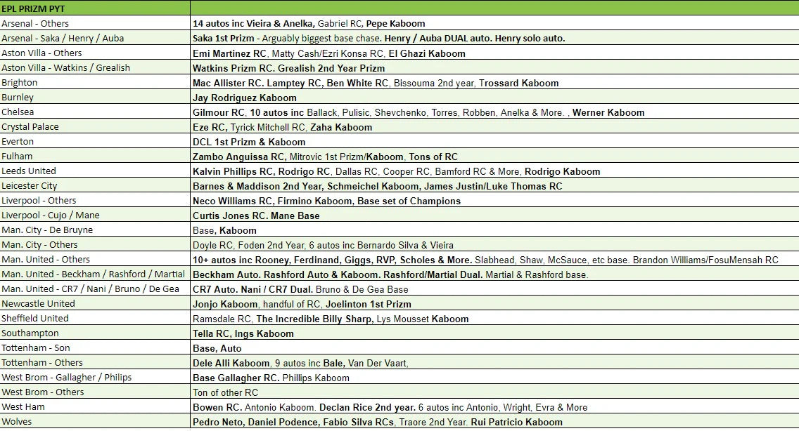 HALF CASE - 10 Boxes - 20/21 EPL Prizm H2 Hybrid ft a guaranteed 1 parallel /23, /10 or /1 per BOX and chasing Kabooms!, Gold Wave & Black Gold Autos!