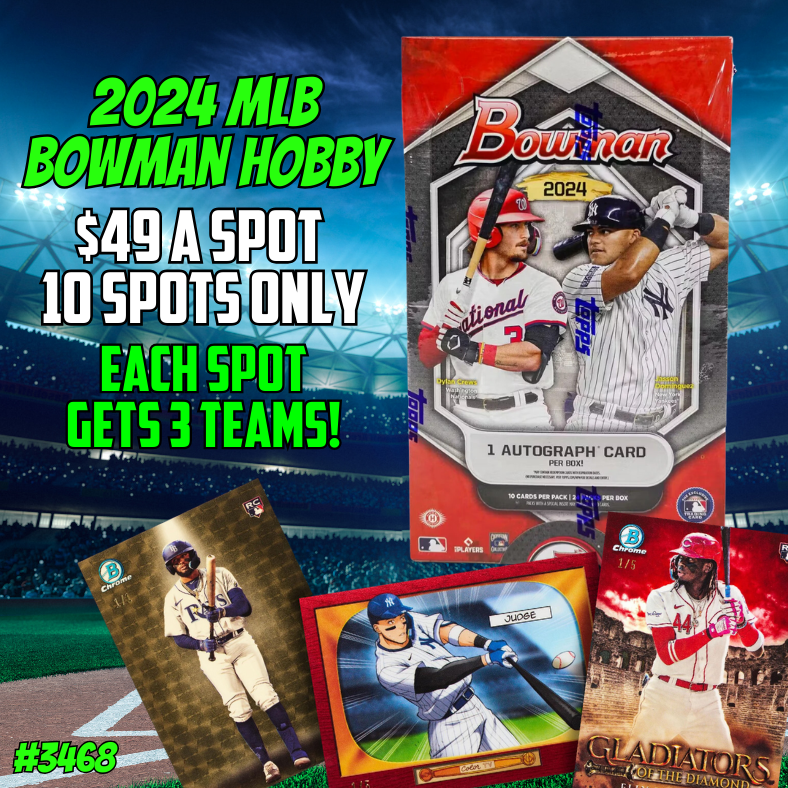 Break 3468 - 2024 MLB Bowman Hobby - 10 Spotter - 3 Teams Per Spot!