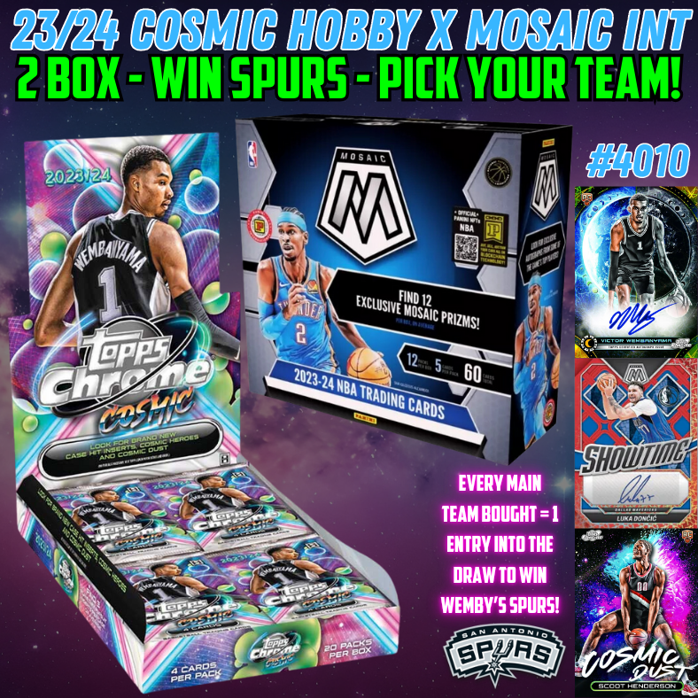 Break 4010 - NBA 23/24 Cosmic Chrome x Mosaic Int. Hobby 2 Box - WIN SPURS - Pick Your Team!