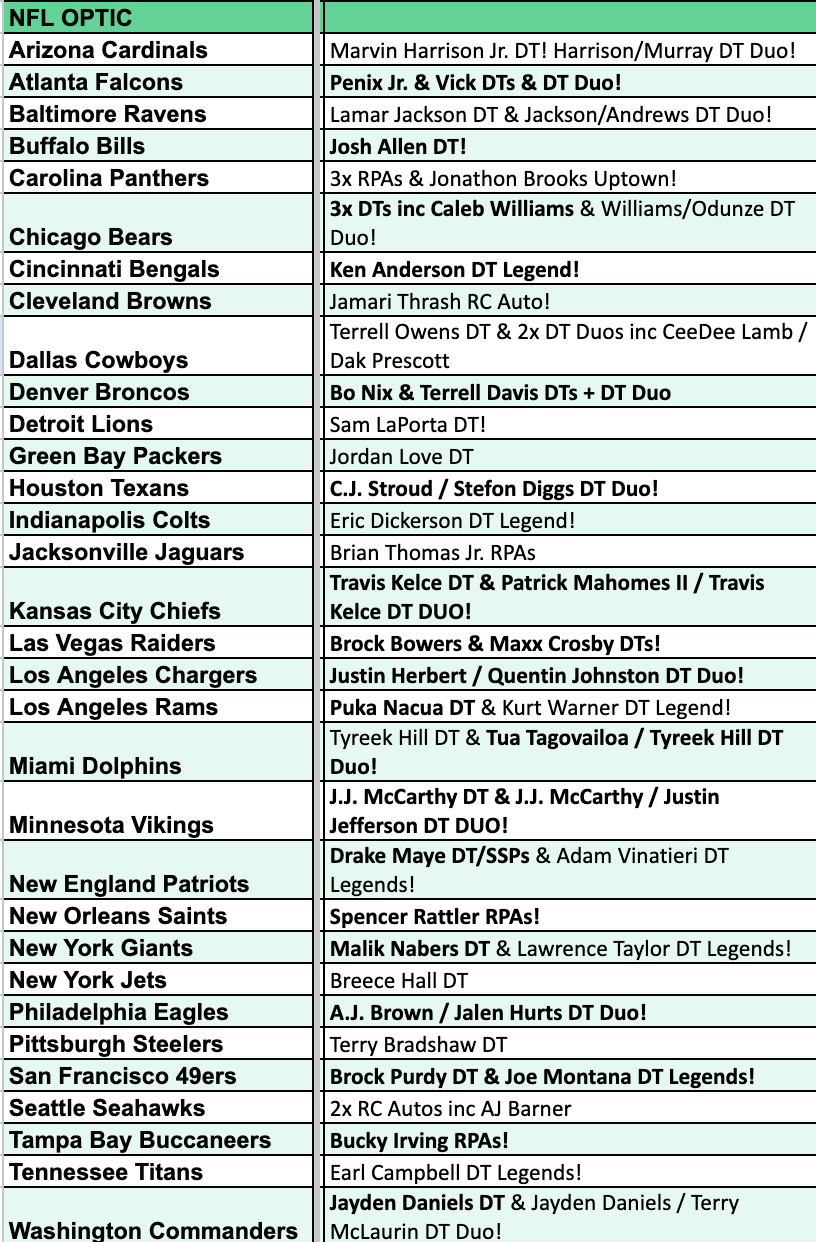 Break 4385 - NFL 2024 Optic Hobby - PICK YOUR TEAM!