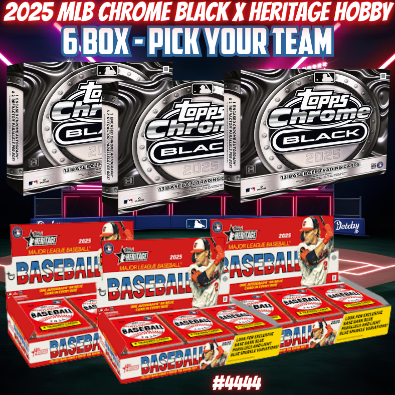Break 4444 - 2025 MLB Chrome Black x Heritage Hobby 6 Box - Pick Your Team!
