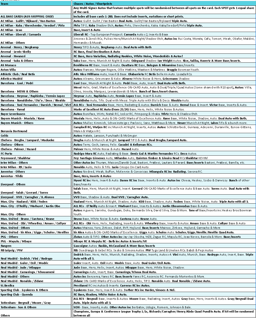 This format allows you to focus on acquiring cards from your favourite teams, players or characters.